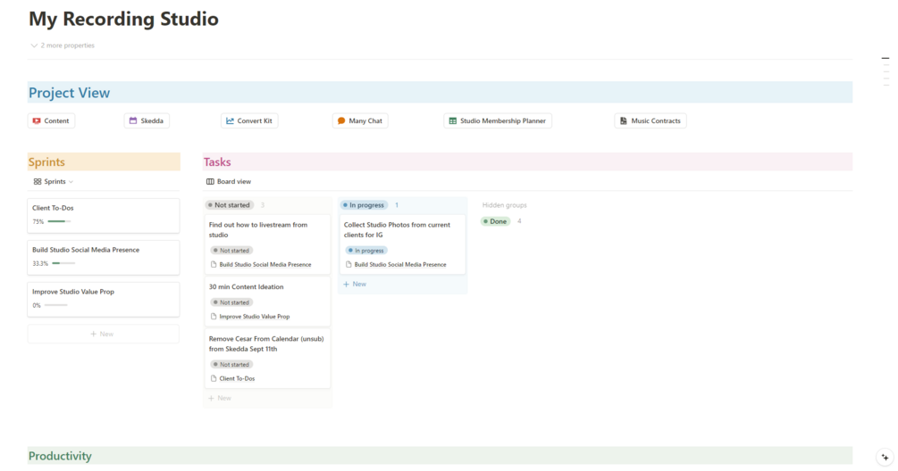 Designed with the agile framework in mind, this template breaks up massive goals into easy to achieve tasks which makes managing multiple businesses and projects a breeze.